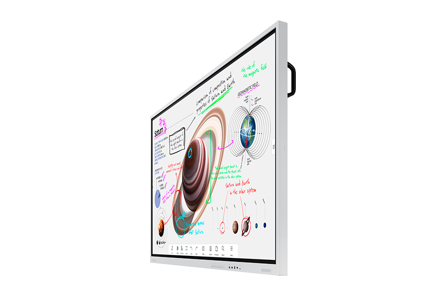 Дисплей сочетает высокую производительность с интуитивным управлением. Основные рабочие характеристики включают функцию одновременной работы до 20 касаний, позволяющую нескольким пользователям взаимодействовать с контентом. Встроенная интерактивная панель Samsung Tizen обеспечивает доступ к приложениям для видеоконференций, браузеру и инструментам аннотирования. Поддержка беспроводной трансляции экрана по стандартам Miracast и AirPlay 2 упрощает подключение мобильных устройств и ноутбуков. Сильная сторона — интеграция с системами видеоконференцсвязи, включая совместимость с популярными облачными сервисами, что превращает дисплей в полноценный узел для дистанционных совещаний.